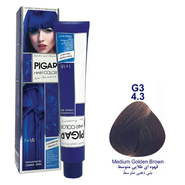 رنگ مو پیگار قهوه ای طلایی متوسط ( شماره 4.3 G3 Pigar )