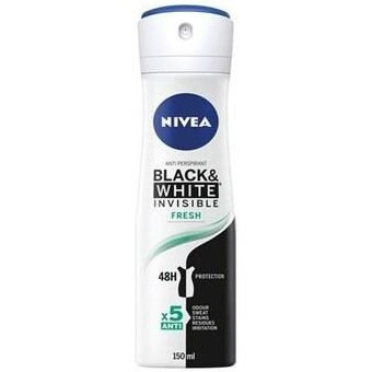 اسپری بدن 48 ساعته BLACK & WHITE INVISIBLE FRESH زنانه نیوآ یکی از بهترین انتخابها برای زنانی است که به دنبال محافظتی مطمئن و احساس تازگی در طول روز هستند. این اسپری با فرمولاسیون ویژه خود، علاوه بر ایجاد بوی خوش، از ایجاد لکه بر روی لباسهای تیره و روشن جلوگیری میکند.