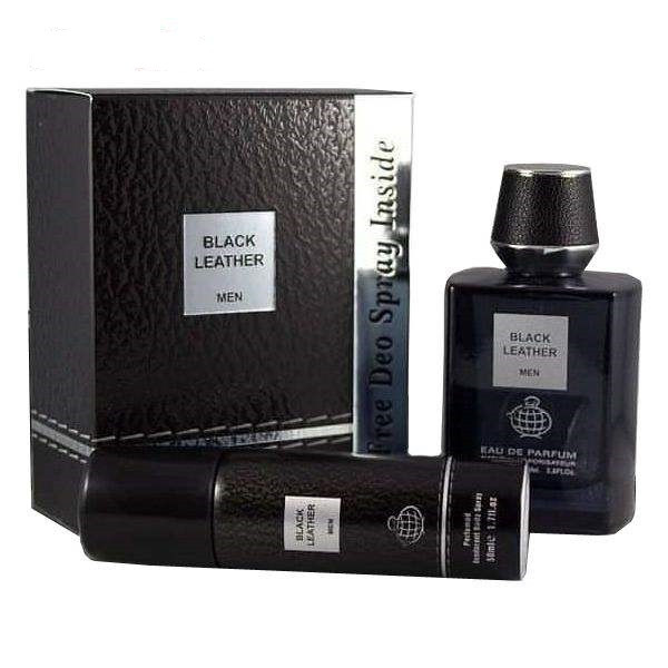 ادو پرفیوم مردانه بلک لیدر Black Leather یکی از ادکلنهای مشهور و پر استقبال برند فراگرنس ورد که رایحهای شبیه به ادکلن معروف برند کرید با نام Aventus دارد. بلک لیدر رایحهای شیرین و طبعی خنک ولی مناسب برای آقایان در سال 2016 از برند فراگرنس ورد Fragrance World تولید شد. این ادو پرفیوم بطریای ایستاده و کتابی به رنگ سورمهای دارد که بر روی آن در کادر خاکستری رنگ نام ادکلن و در پایین آن لوگوی برند همراه با غلظت و حجم و سایر اطلاعات با رنگ سفید نوشته شده است.